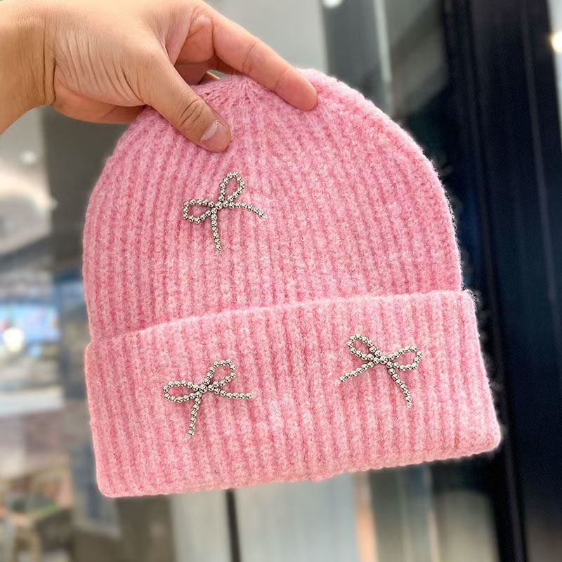 韓国ブロガーの女性用リボンニットウール帽子、秋冬の厚みのある多用途耳保護防寒帽子、頭囲の大きな包頭帽子