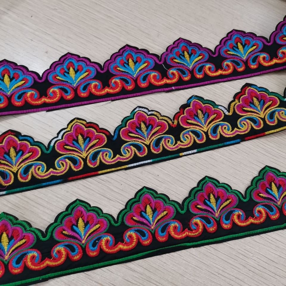 わさびの刺繍の民族の刺繍の長い布は花の縁にアイロンをかけてゴムの少数民族の舞台の演出服の時代劇の補助材料を持ちます。