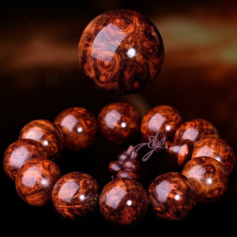 海南黄花梨男士手串. 鬼顔鬼眼海黄油梨老料仏珠ブレスレット男女史
