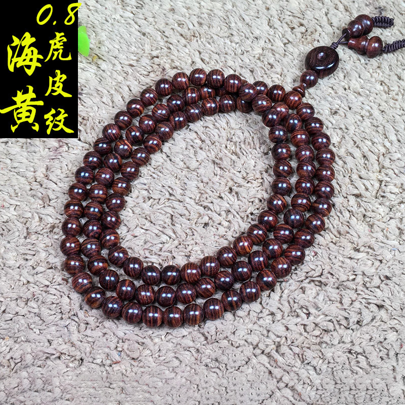 海南黄花梨8mm 108粒の多輪の手串の古い材料の虎の皮の紋様の紫油梨の黄花梨木の男女の項の仏珠