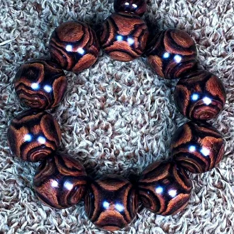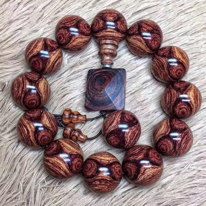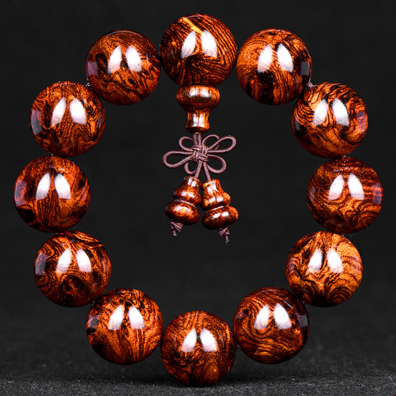 海南黄花梨男士手串. 鬼顔鬼眼海黄油梨老料仏珠ブレスレット男女史