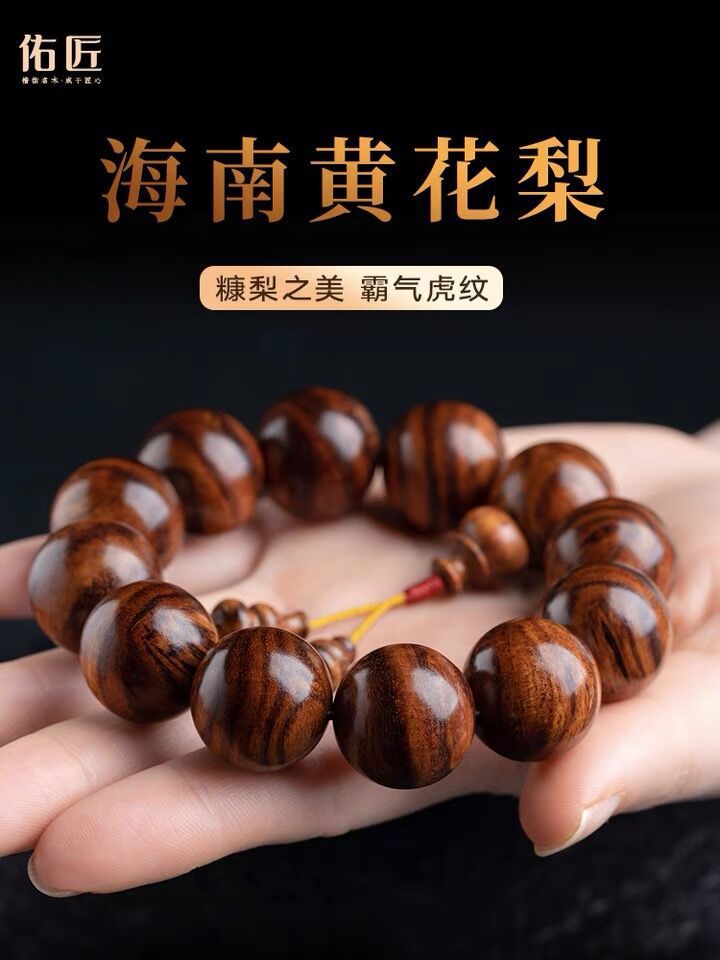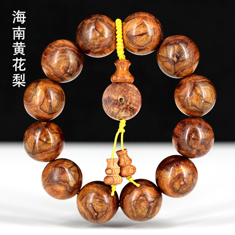 海南黄花梨油梨老料男性手串2.0海黄普通の木目ブレスレット男女金仏珠数珠