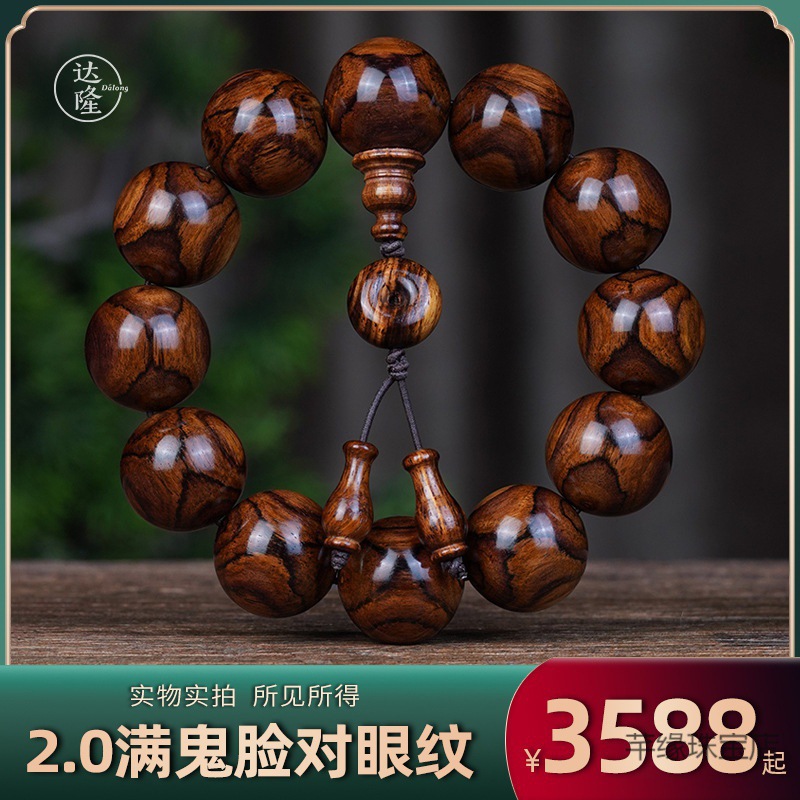 海黄【2.0満鬼顔対眼】海南黄花梨手串老料檀香木仏珠手串男