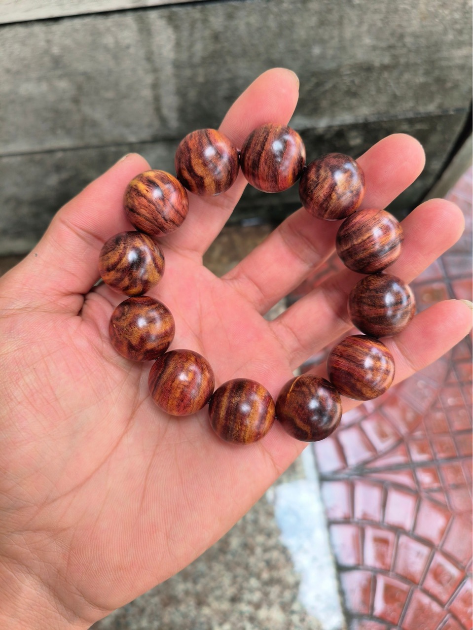 海南黄花梨手串老料鬼顔鬼眼油梨. 古い材料の仏珠のブレスレットの男女のカップルの金の数珠