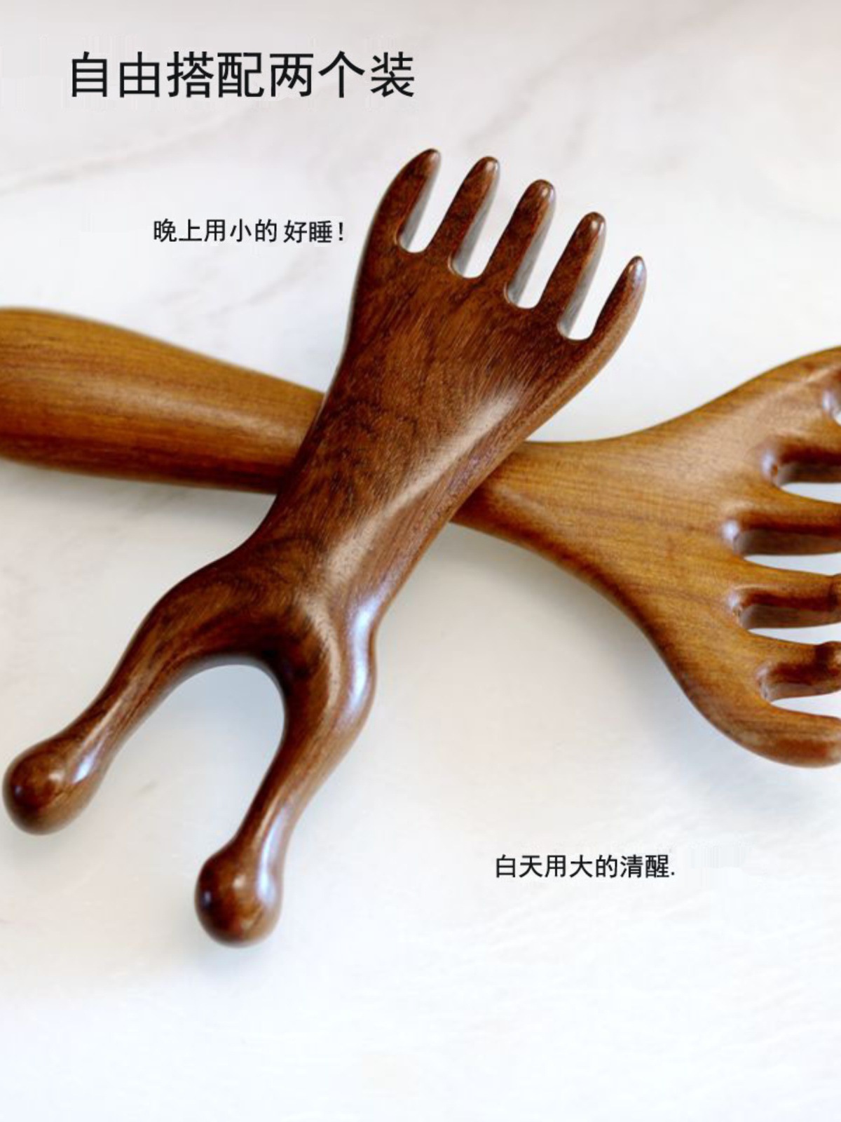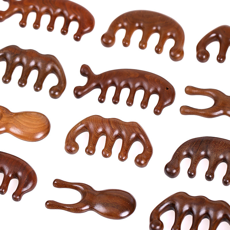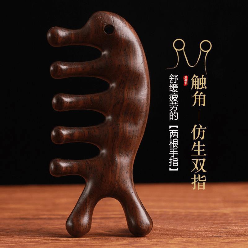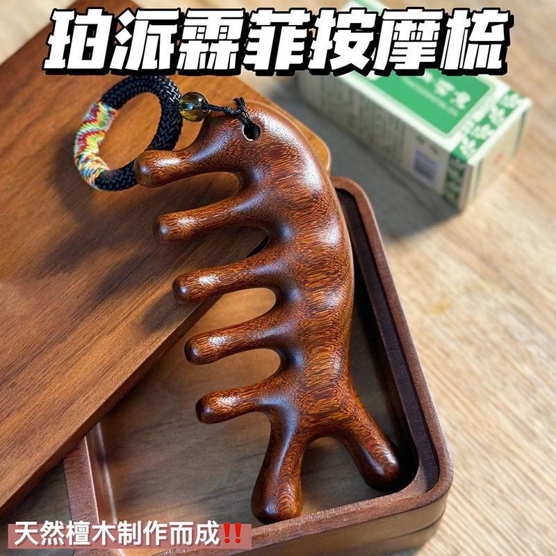 檀木頭部マッサージ経絡櫛養生頭治療道具天然檀木頭皮リンパ掻爬通神器