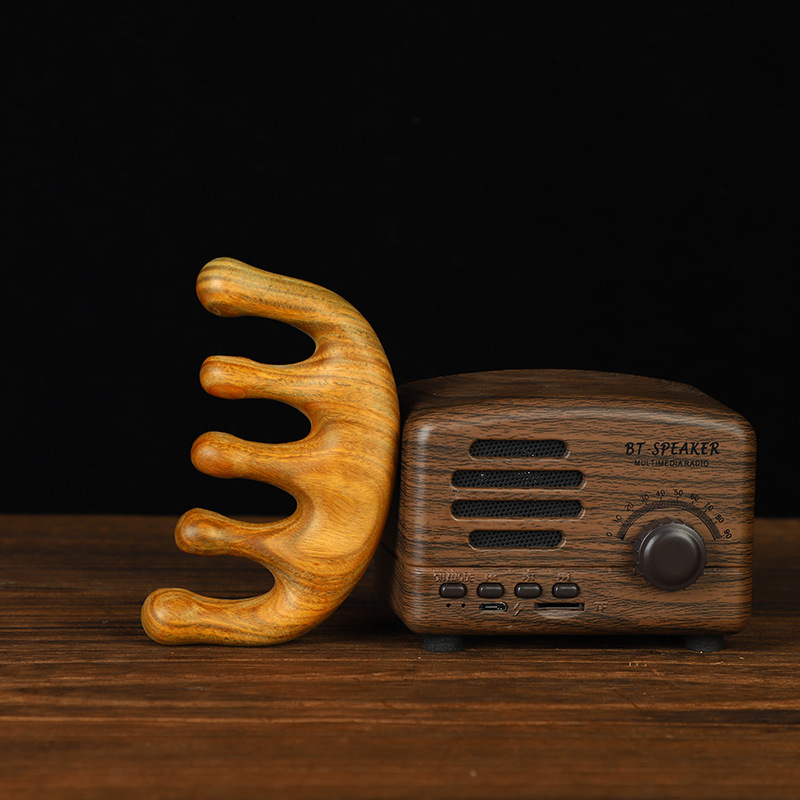 震え音爆金天然金糸檀緑檀木櫛頭五経絡頭皮頚部マッサージ櫛メーカー直販
