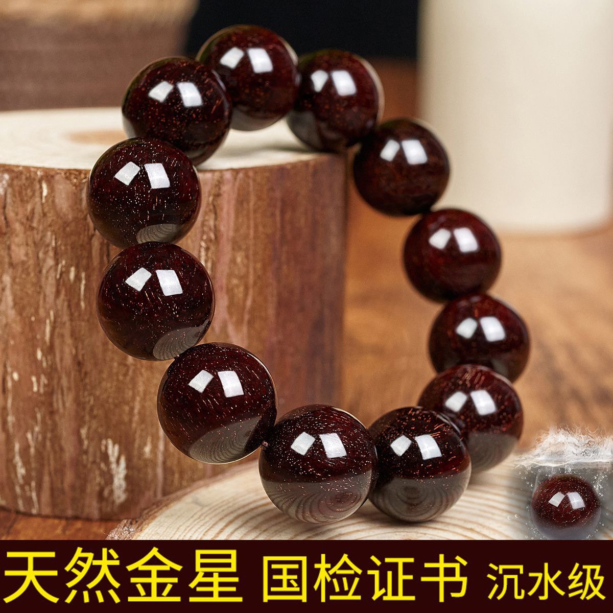インドの小葉紫檀金星老料手串高密沈水順紋檀香紫檀ブレスレット紅木文遊び卸売り