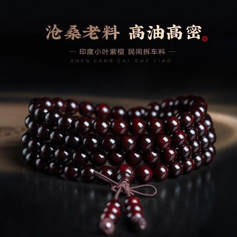 正統インド小葉紫檀108個の高油高密繊細な牛毛紋紫檀ブレスレット男女プレゼント