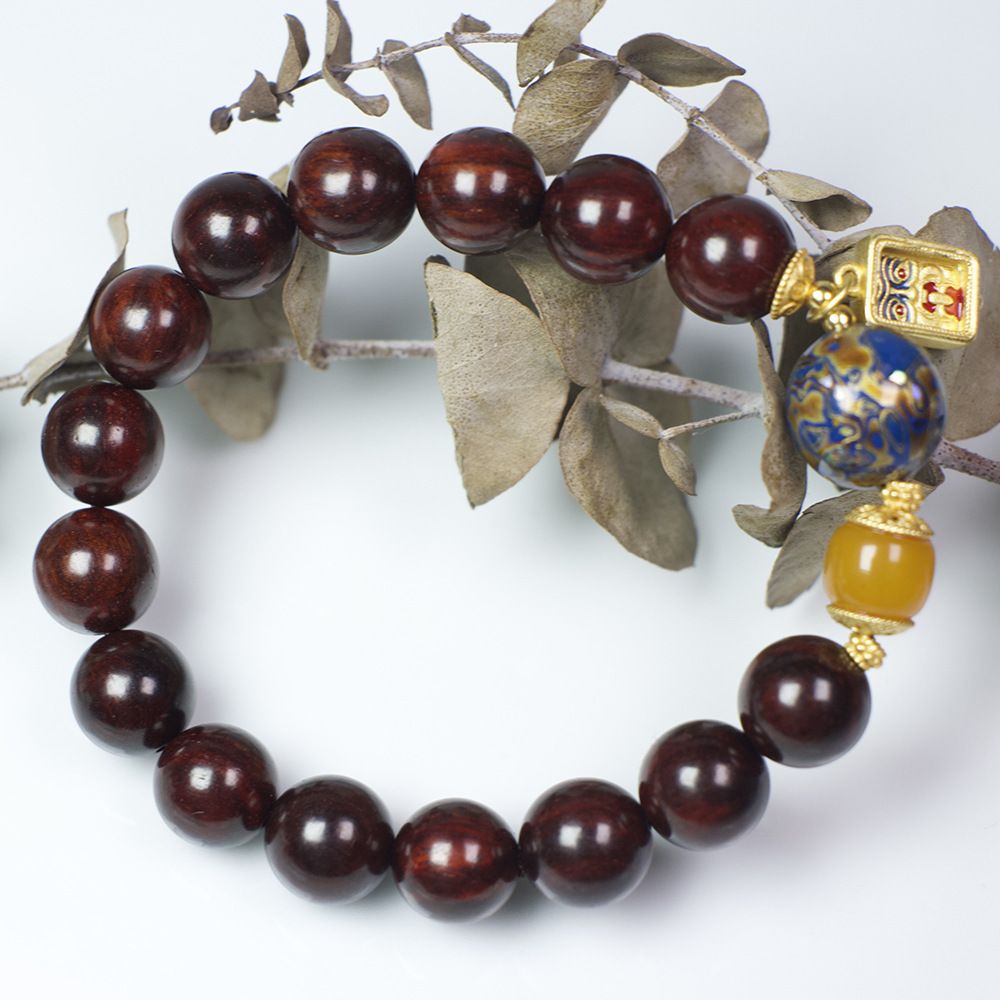 小葉紫檀手串女インド盤文遊念仏珠散珠白檀香金星檀木和田玉ブレスレット