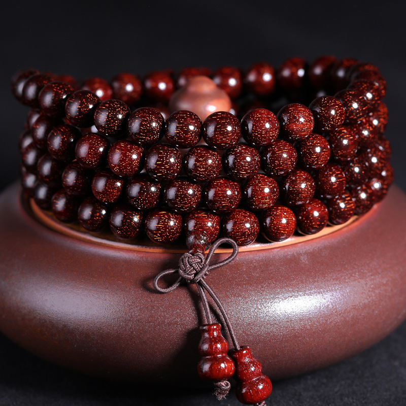 卸売り小葉紫檀老料満金星手串男108個のブレスレット多輪数珠宝飾品文游仏珠2.0