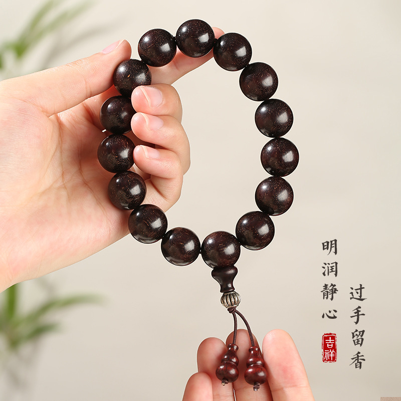 天然インドの小葉紫檀手串男女新疆と田玉のブレスレットの古い材料の黒檀の木の仏珠文は盤を遊んで遊んでいます。
