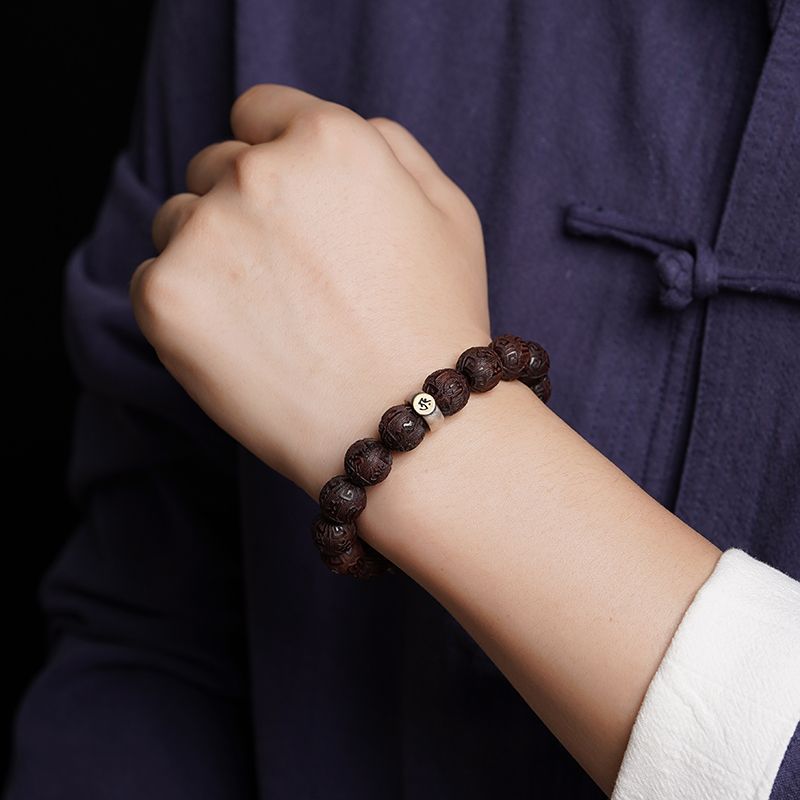 正統インド小葉紫檀手串女老山檀香盤完数珠オリジナルデザイン文遊び仏珠ブレスレット男