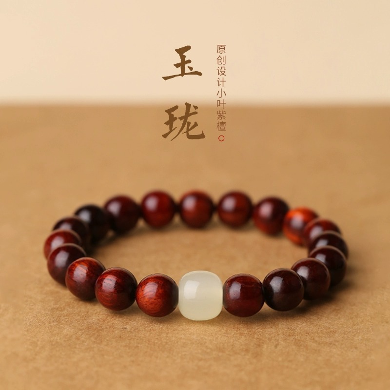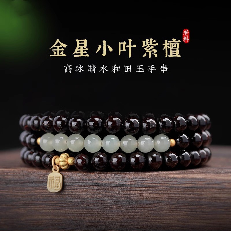 本格的な高級インド小葉紫檀手串男女本物の木製ホノルル数珠仏珠と田玉ブレスレット串