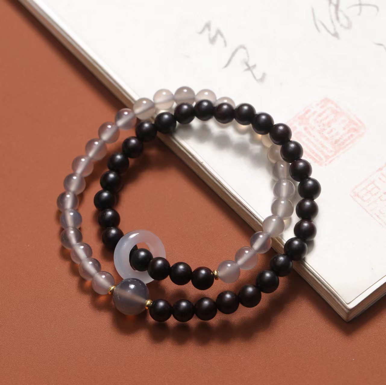 インドの小葉紫檀手串小葉紫檀灰瑪瑙双輪手串文芸レトロ手串メーカー卸売り