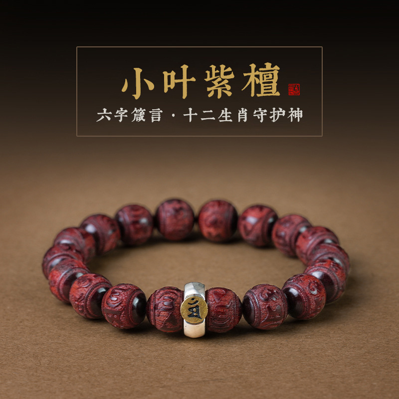 メーカー直販インド小葉紫檀2.0十二生肖文游手串木質鎖108男女仏珠