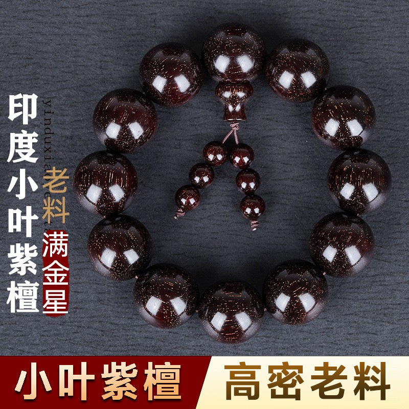 インドの小葉紫檀金星老料手串高密沈水順紋檀香紫檀ブレスレット紅木文遊び卸売り