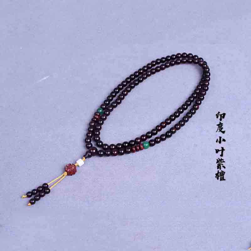 インドネシアの爆満金星小葉紫檀木手串インドの古い材料のブレスレット108個の仏数珠男女史文游