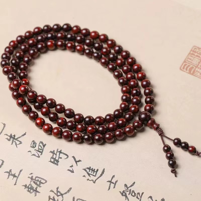 インドの小葉紫檀手串108個の赤木仏珠ブレスレットのネックレス10mmの古い牛の毛の紋様の男女の装飾
