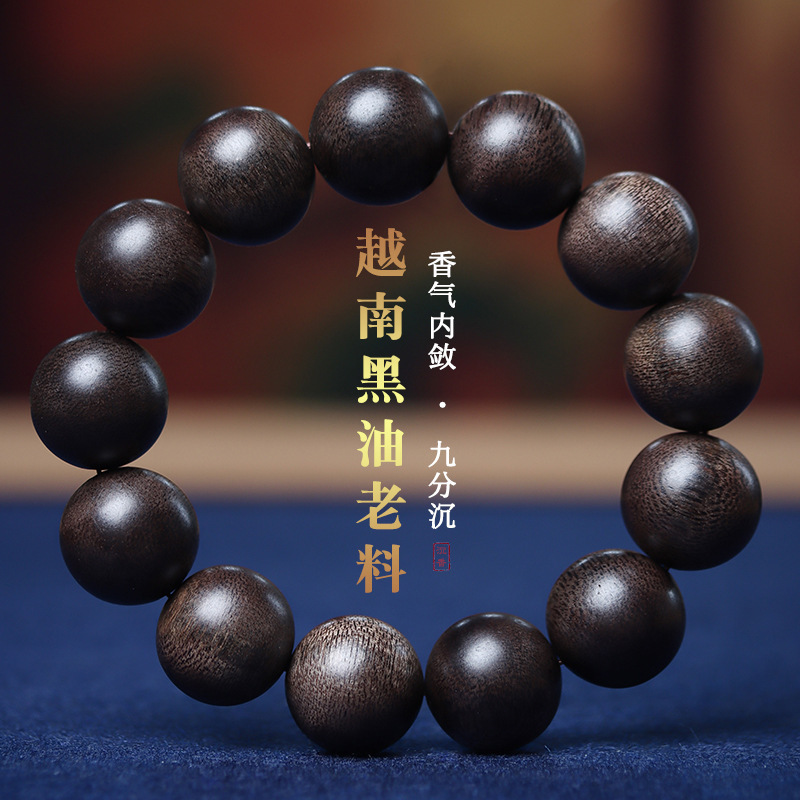 ベトナム天然芽庄奇楠沈香手串九分沈本命年輸送木造仏珠単輪ブレスレット男女