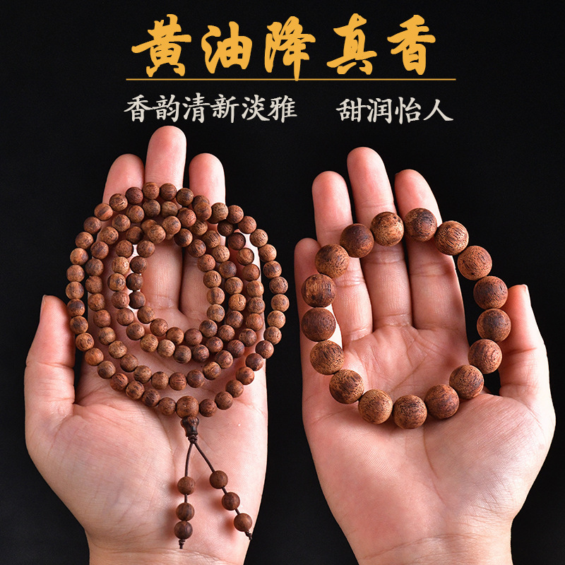 ミャンマー小葉降真香バター麻糸手串奇楠級降真香8mm108文游仏珠数珠ブレスレット