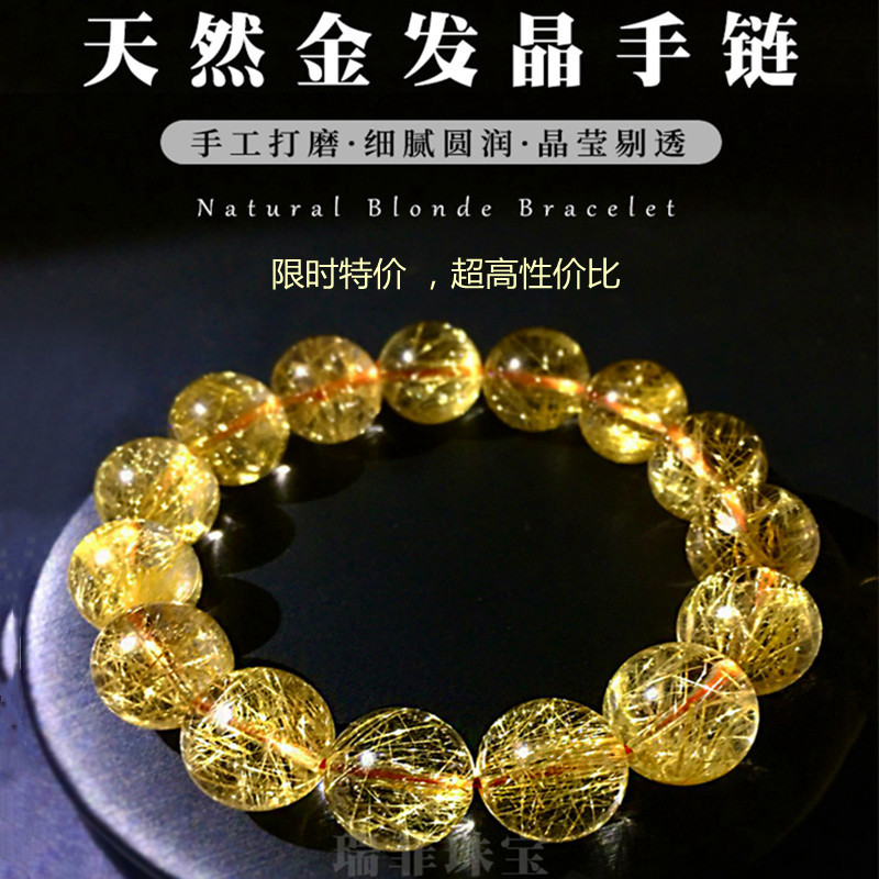 ブラジルの金の結晶の天然水晶の手の串の板のチタンの結晶の黄色の結晶の消磁の透明な耐磨耗のカップルのブレスレットの男女