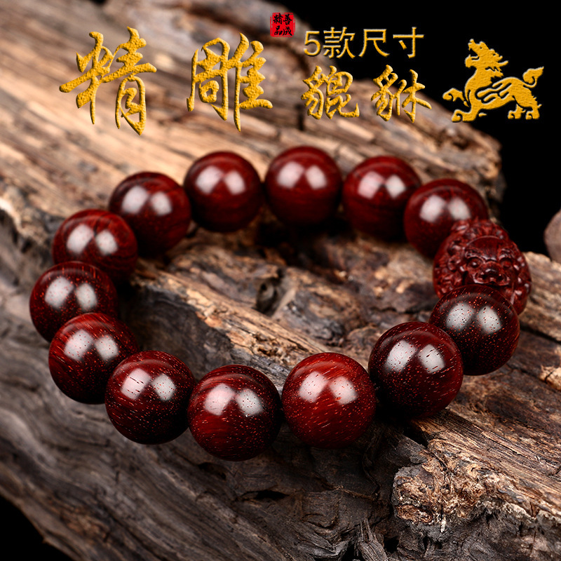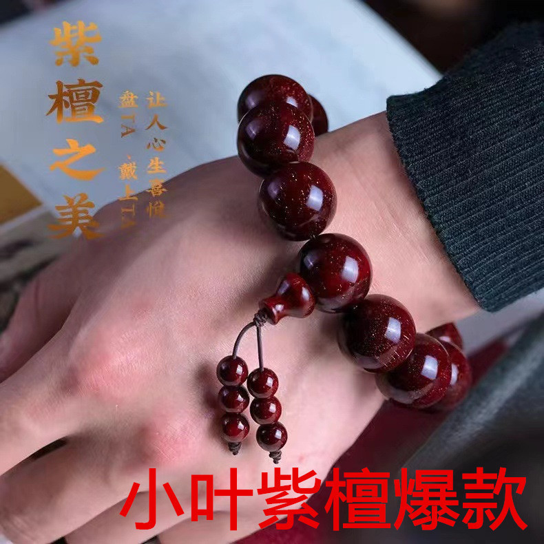小葉紫檀手串男女満金星紫檀木ブレスレット文遊び紅木仏珠数珠108個のネックレス