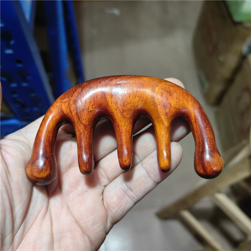 五爪金糸檀木頭部マッサージ櫛経絡摘通神器頭皮リンパ養生道具五指ブラシ
