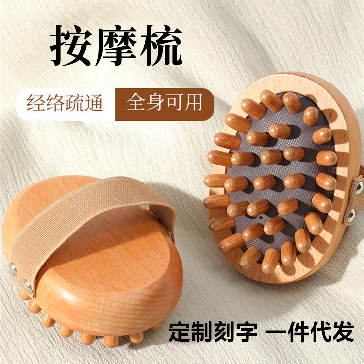 ケヤキエアクッション経絡マッサージブラシ手動ツボ経絡ブラシ頭部全身マッサージ櫛木製マッサージ器