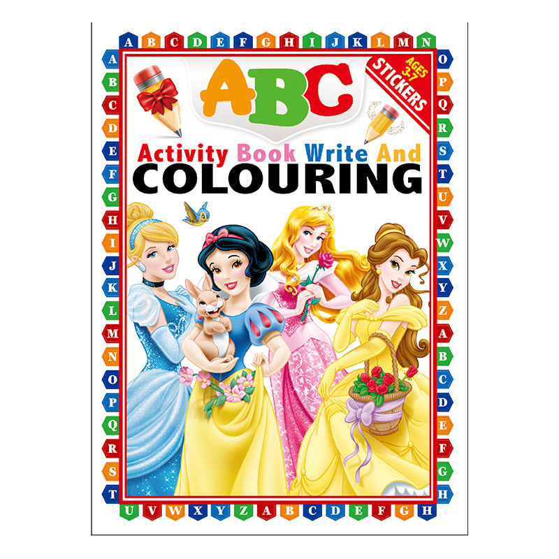 王女は赤い字を描いて漫画を書いて本の26の英語のアルファベットを塗ります。