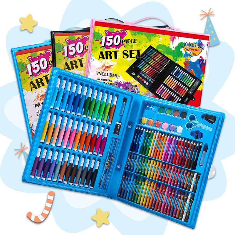 150点セット水彩ペンギフトボックス子供用水洗い可能幼児絵画ペンクレヨン落書きアート塗り絵ツール