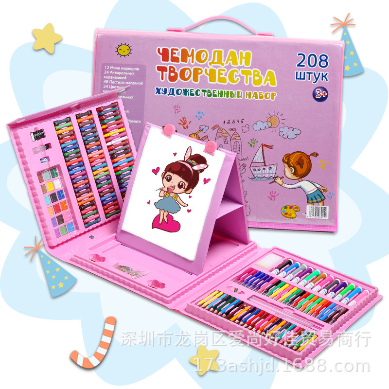 208pc六一児童プレゼント小学生美術絵画セット水彩ペン油絵棒絵画ペンセット