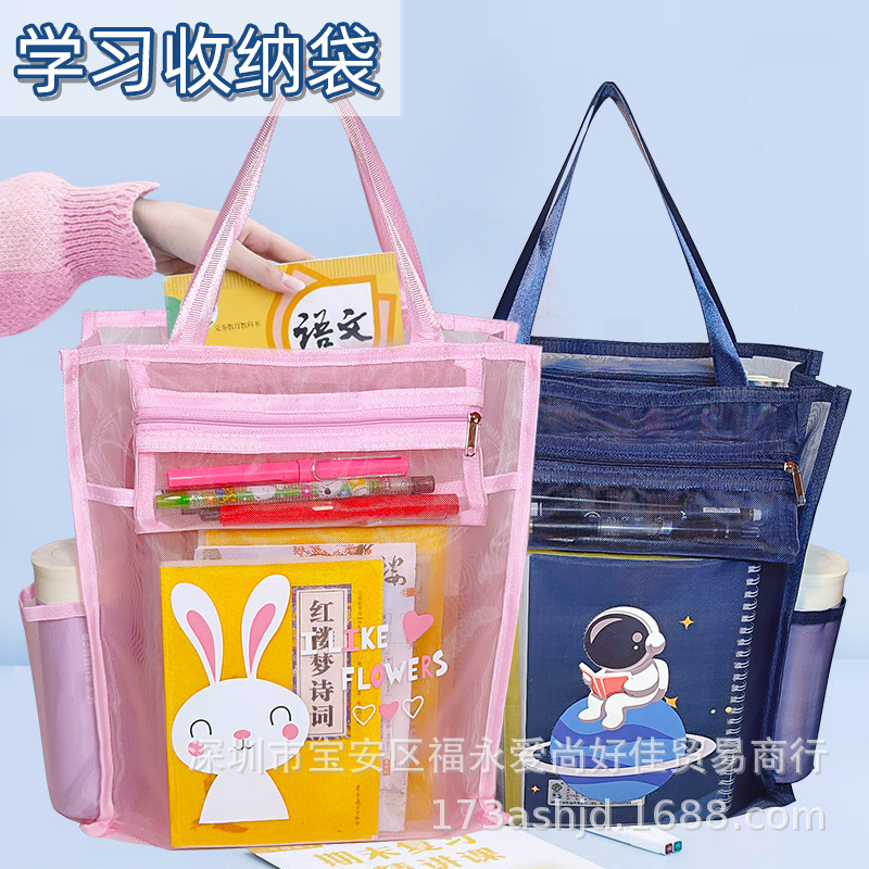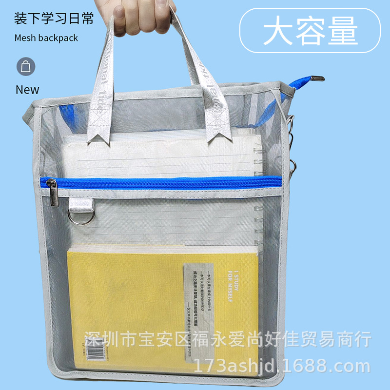 A4学科分類書類バッグ事務小学生教科書試巻収納資料袋三層靭龍網糸透明