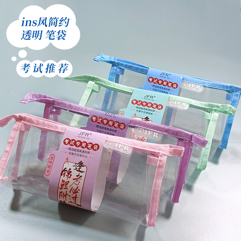 防水透明手提げ袋大容量試験筆袋pvcファスナー収納バッグ文房具筆箱学生学習用