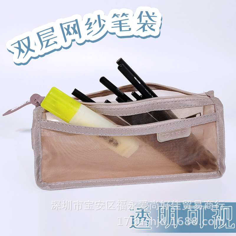 学習筆袋試験シンプルナイロン網糸高考文房具袋収納バッグ中学校学生携帯大容量