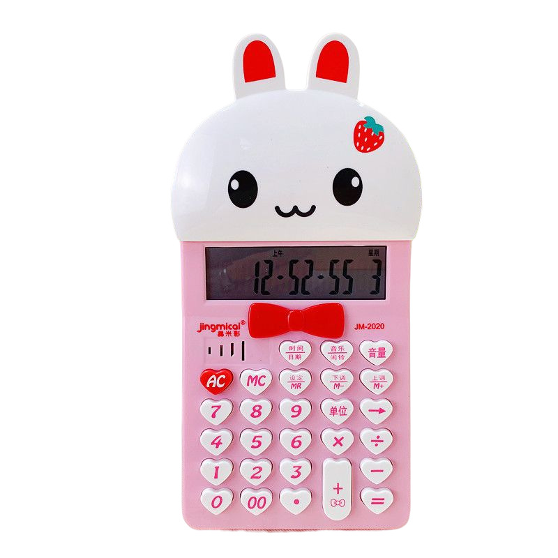 漫画かわいいピンクのウサギの電卓の音声の大きいボタンのコンピュータの12桁の電子の太陽エネルギーのデスクトップの事務用
