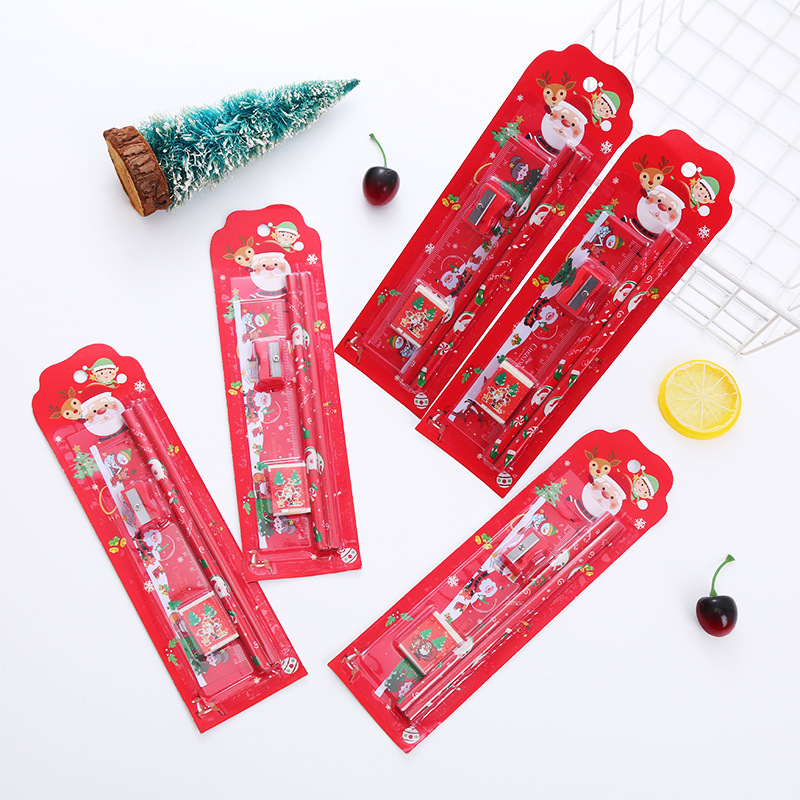 クリスマス文房具セット鉛筆消しゴム鉛筆ナイフ定規の縁取り袋学生文房具用品祝日プレゼント