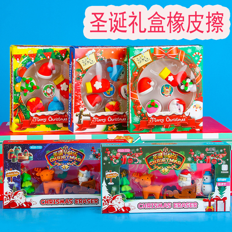 新型サンタクロース雪だるま消しゴムケース小学生プレゼントアニメかわいいセット消しゴム事務文房具