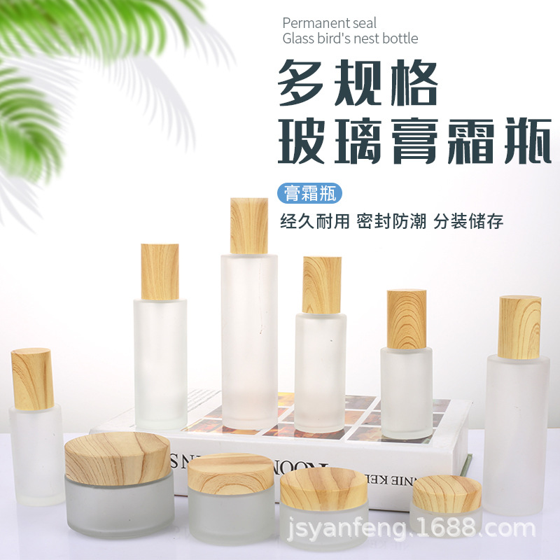 木目蓋蒙砂乳液クリーム瓶アイクリーム瓶すりガラス化粧スキンケア精華液化粧水空瓶