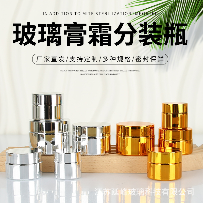 30gメッキガラス膏瓶金色クリームアイクリーム分注瓶銀色化粧品マスク缶小サンプル瓶