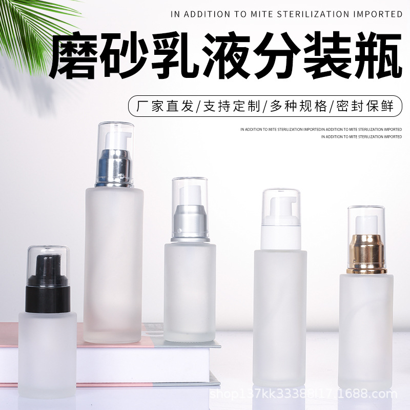 50ml蒙砂ガラスローションボトル押圧フロスト化粧スキンケア分注ボトルシール香水エッセンス空ボトル