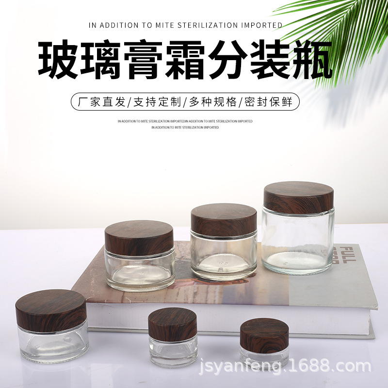 深い木目の蓋の透明なガラスのクリームの瓶のマスクの官のアイクリームのサンプルの空の瓶の化粧のスキンケアの乳液は瓶を分けます。