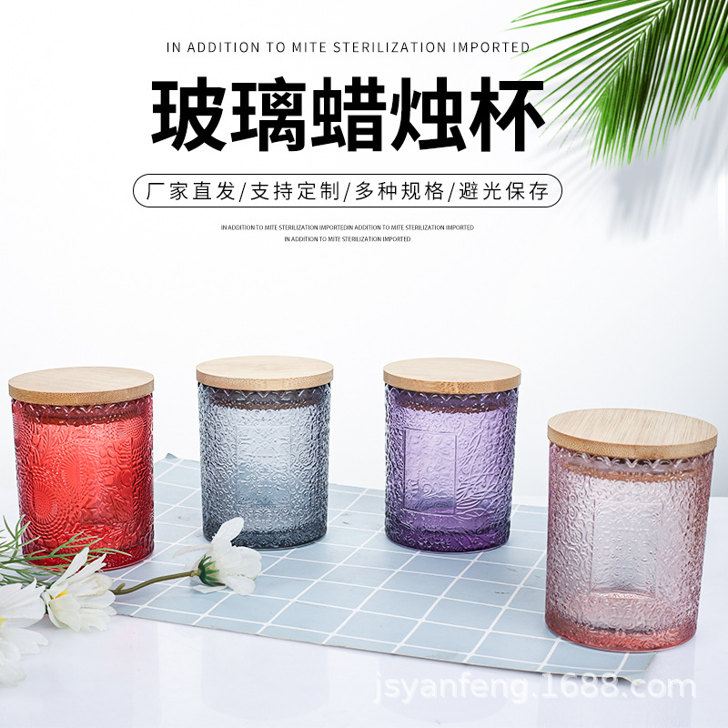 エンボスガラスキャンドルカップカラーアロマキャンドル空カップDIYレースキャンドル容器印刷可能ロゴクリーム瓶