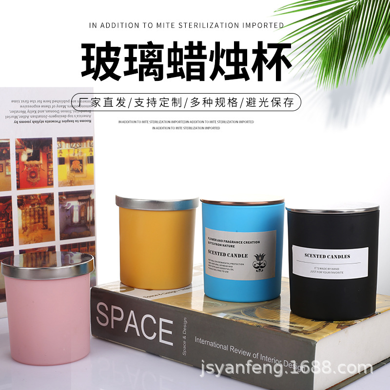 ステンドグラスのキャンドルカップ手作りdiyアロマキャンドル台大豆ワックス容器はロゴキャンドルの空カップの置物を印刷できます。