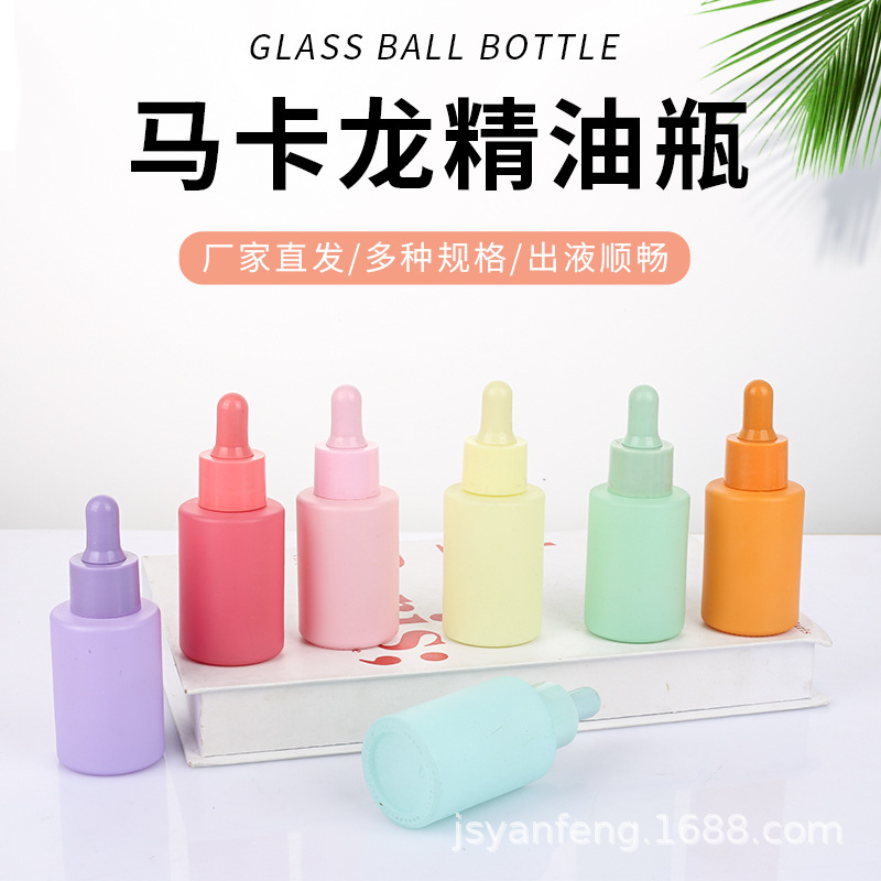 30mlマカロンカラーガラスエッセンシャルオイルボトルプラスチックヘッドスポイトボトル化粧品分注エッセンス水エマルジョンサンプルボトル