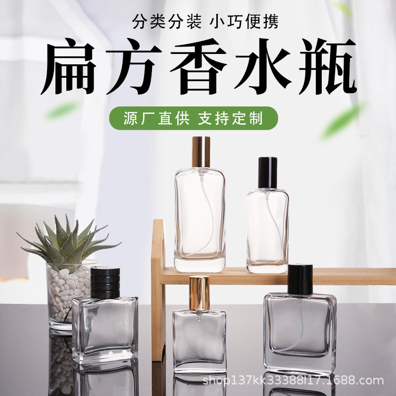 卸売り25ml 50ml 100ml平角透明ガラス香水瓶分注瓶押し瓶スプレー瓶蓋付き