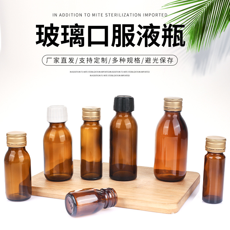 茶色の経口液体瓶アルミ蓋茶色の遮光ガラス薬液分注瓶密封薬粉小薬瓶シロップ空瓶