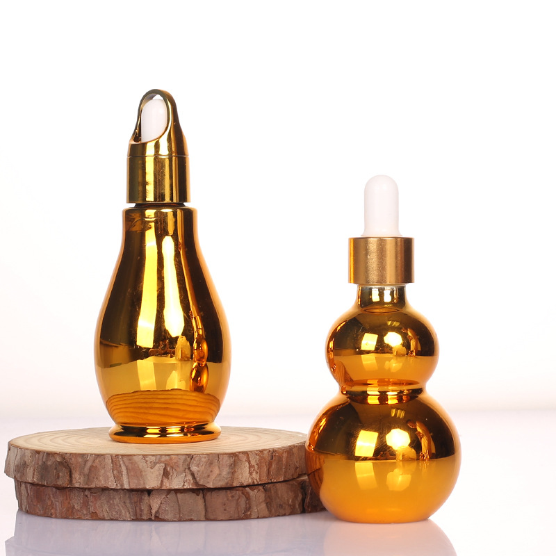 メッキ金色単単双ひょうたん精油瓶ガラス空瓶精華液瓶ゴム滴管瓶化粧品分注瓶