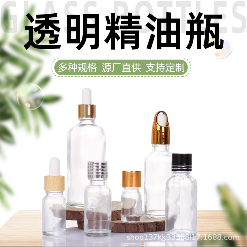 30ml透明ガラスエッセンシャルオイルボトルプラスチックヘッド滴管瓶10mlエッセンス原液分注小サンプルボトル小薬空瓶