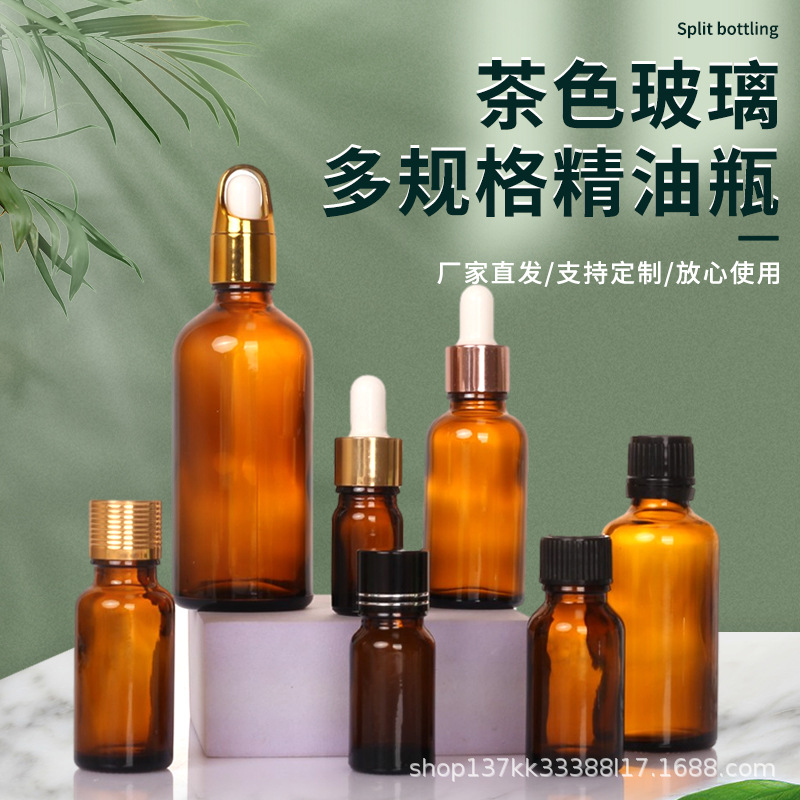 50ml茶色精油瓶30ml茶色遮光エッセンス原液分注小サンプル瓶ゴム滴管瓶空瓶