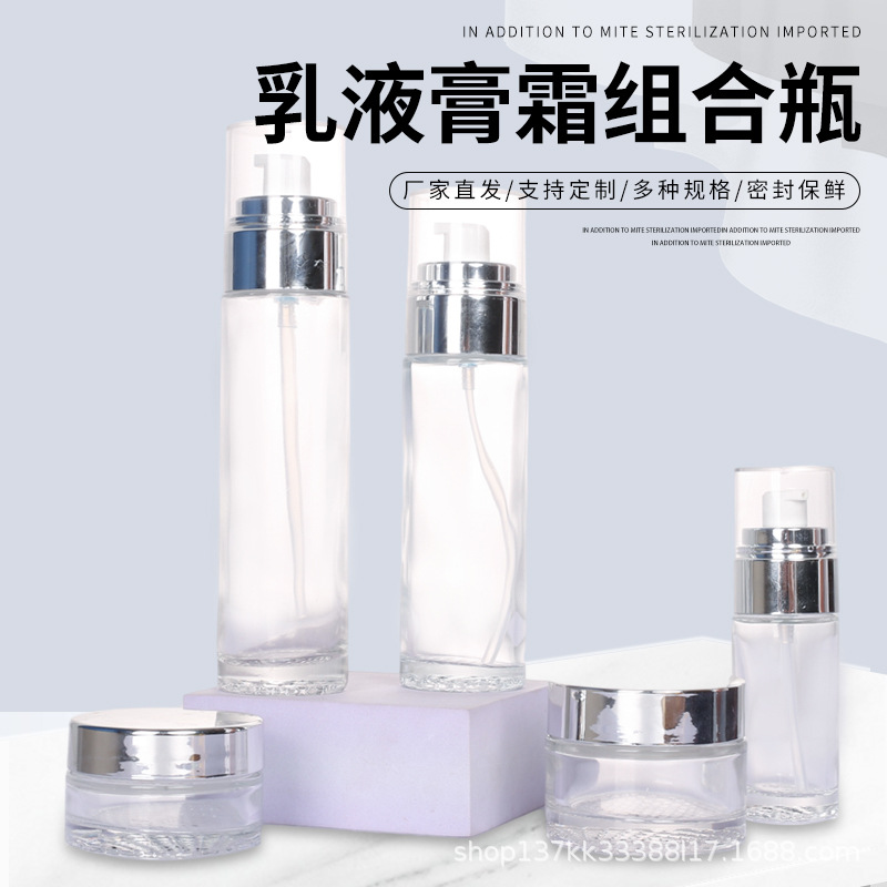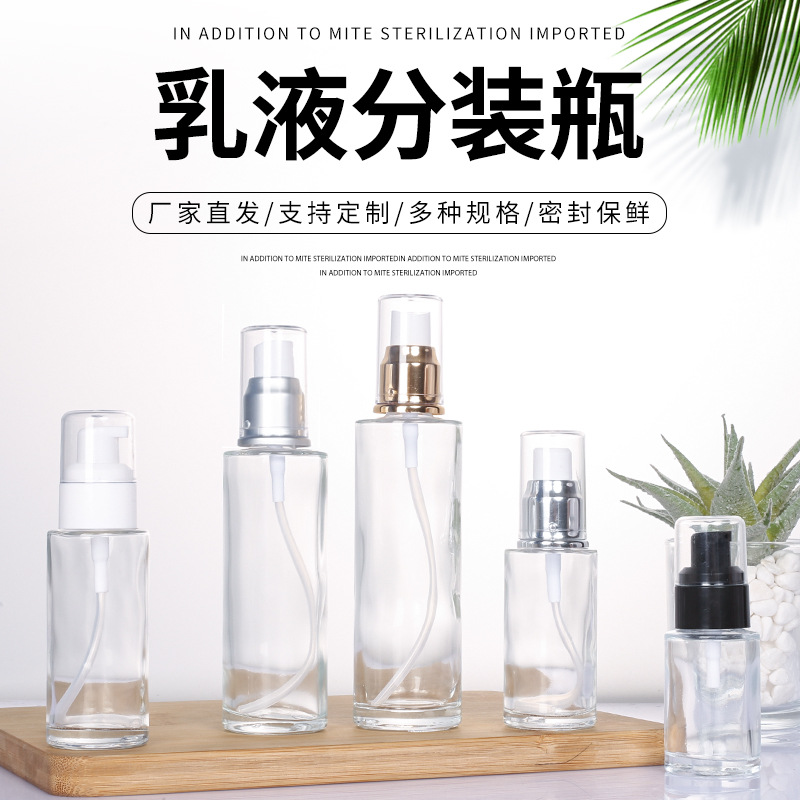 透明玻璃乳液瓶化妆水按压喷雾瓶香水分装瓶泵头面霜瓶粉底液瓶子